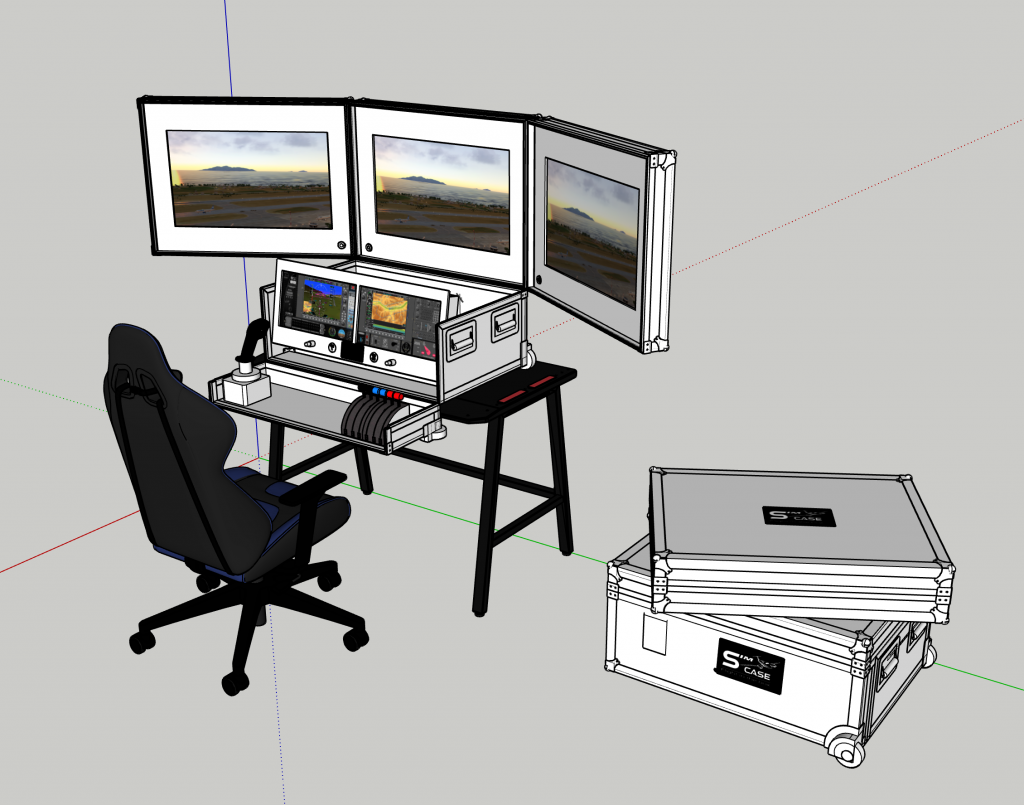 Manque de place, envie d’avoir un vrai simulateur à la maison, ne pas avoir à tout reconnecter avant de voler, ou encore pouvoir déplacer l’ensemble sans tout modifier. Telles étaient les motivations de ce projet. Trouver un concept permettant de ne pas subir, éviter de passer du temps à brancher les équipements et cela dans un format compact et au rangement facile. Ce qui peut aussi faire plaisir aux « collocataires » qui ne partagent pas tout le temps notre passion.